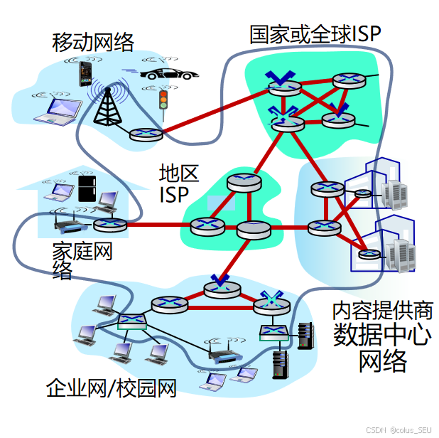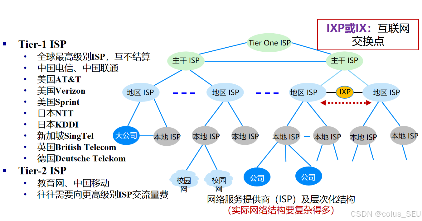 ISP层次:Tier-1→区域ISP→本地ISP的层级结构