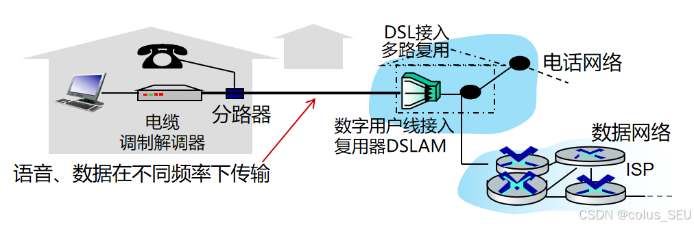 专用线路:从用户到电话公司的中心局(DSLAM)是独享的带宽。