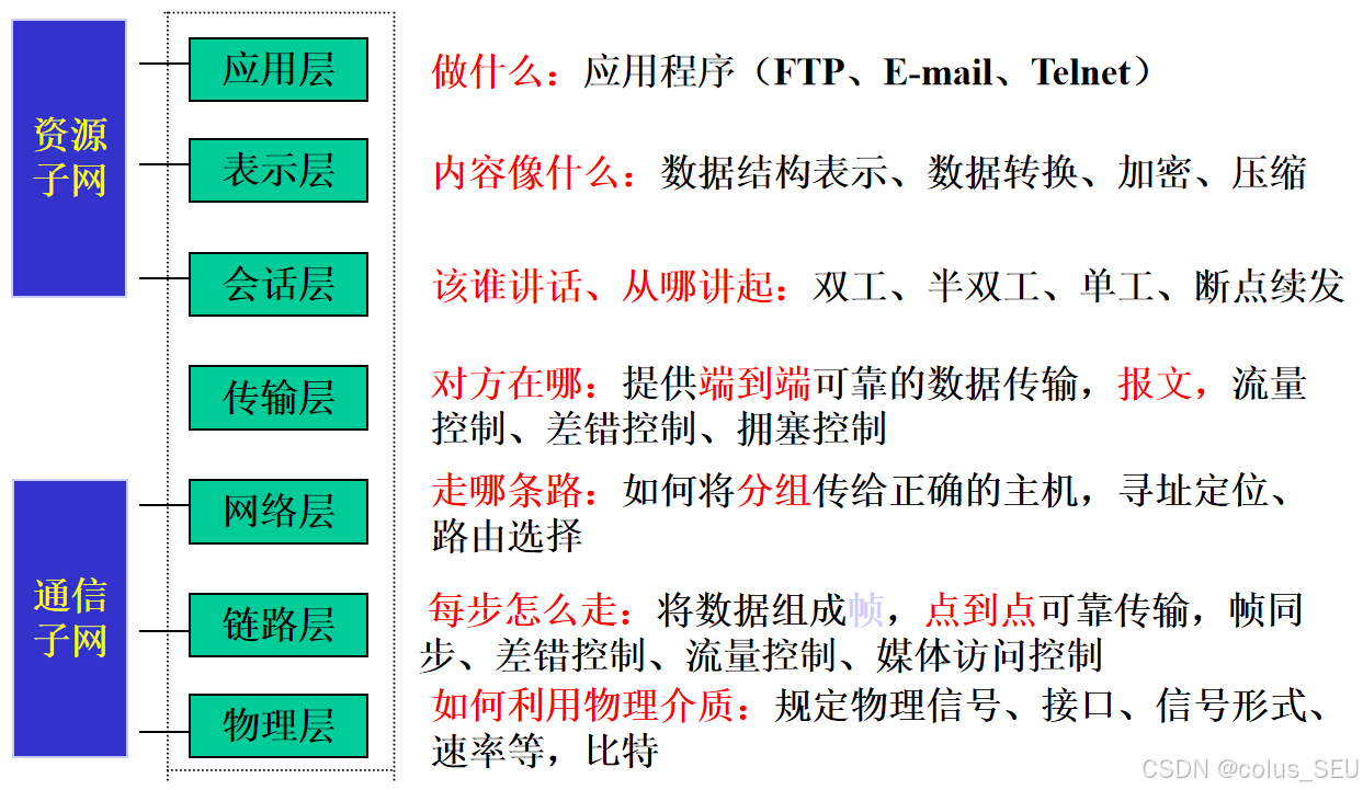 概念清晰,理论完整:模型结构清晰,严格定义了服务、接口和协议的概念,层次分工明确,非常适合教学。