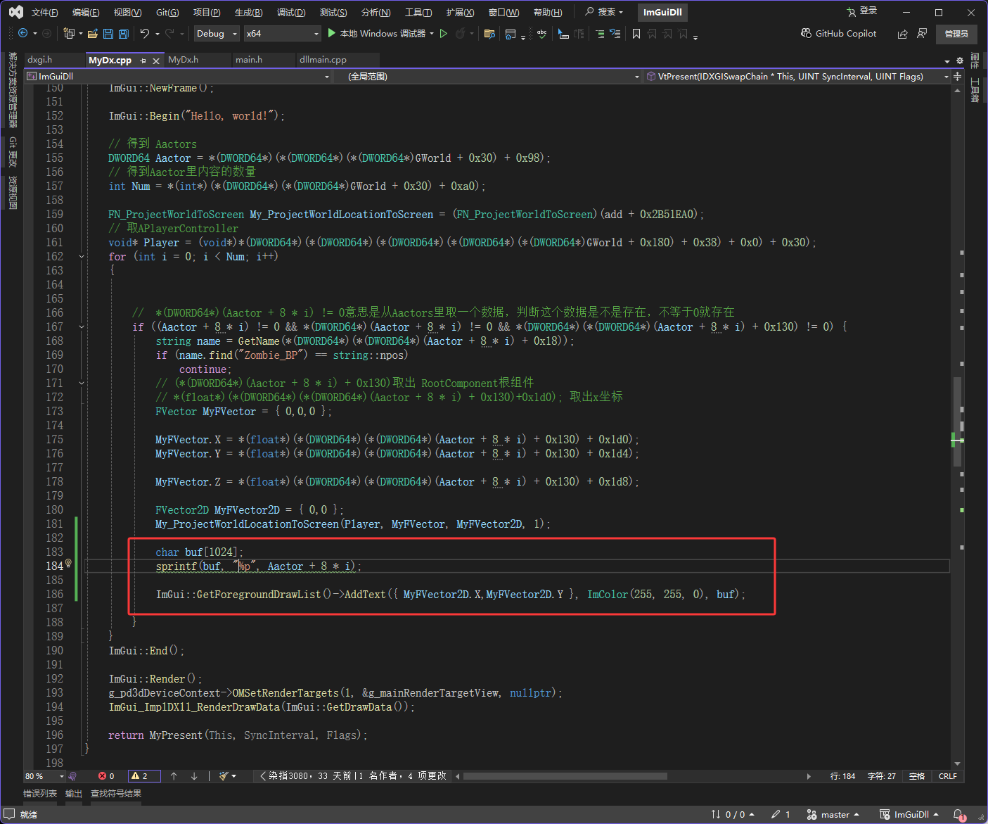 首先改一下代码,如下图红框,把怪物对应的Aactor的地址打印出来,也就是打印ACharacter的地址