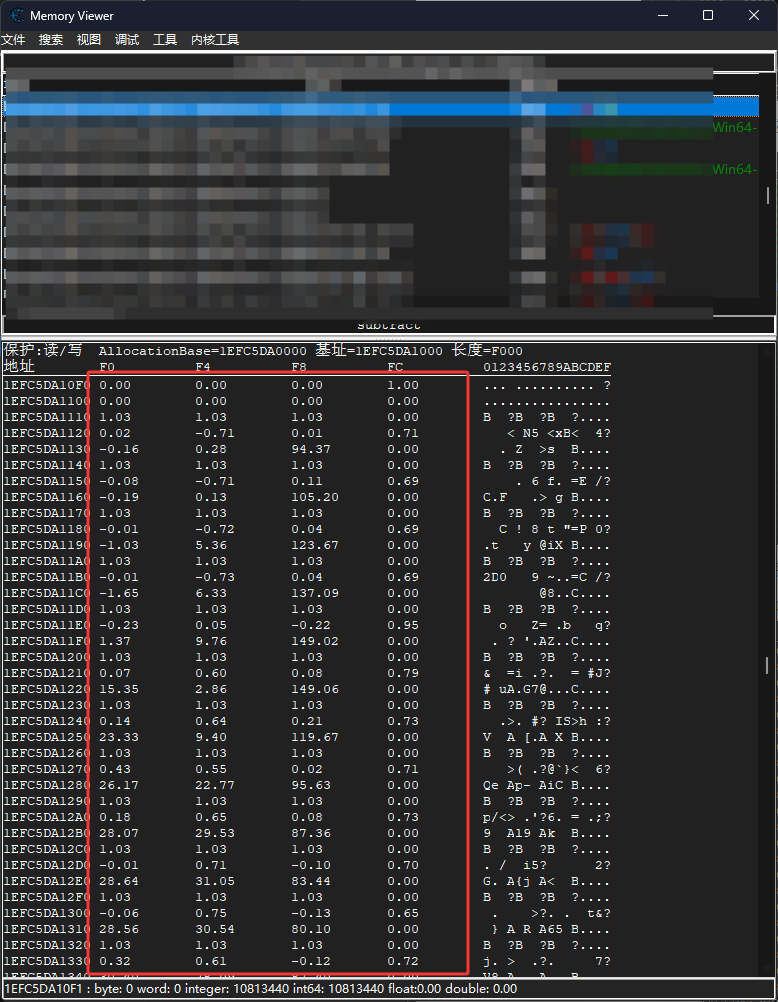 下图红框的都是骨骼的坐标,但是可以发现它的坐标数值都很小,这是因为它们都是相对坐标,到这就找到了骨骼坐标