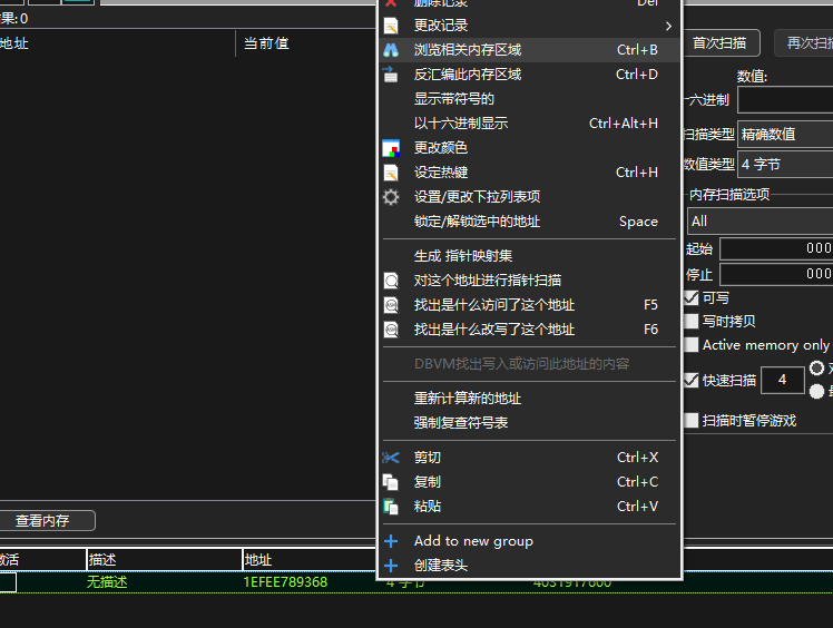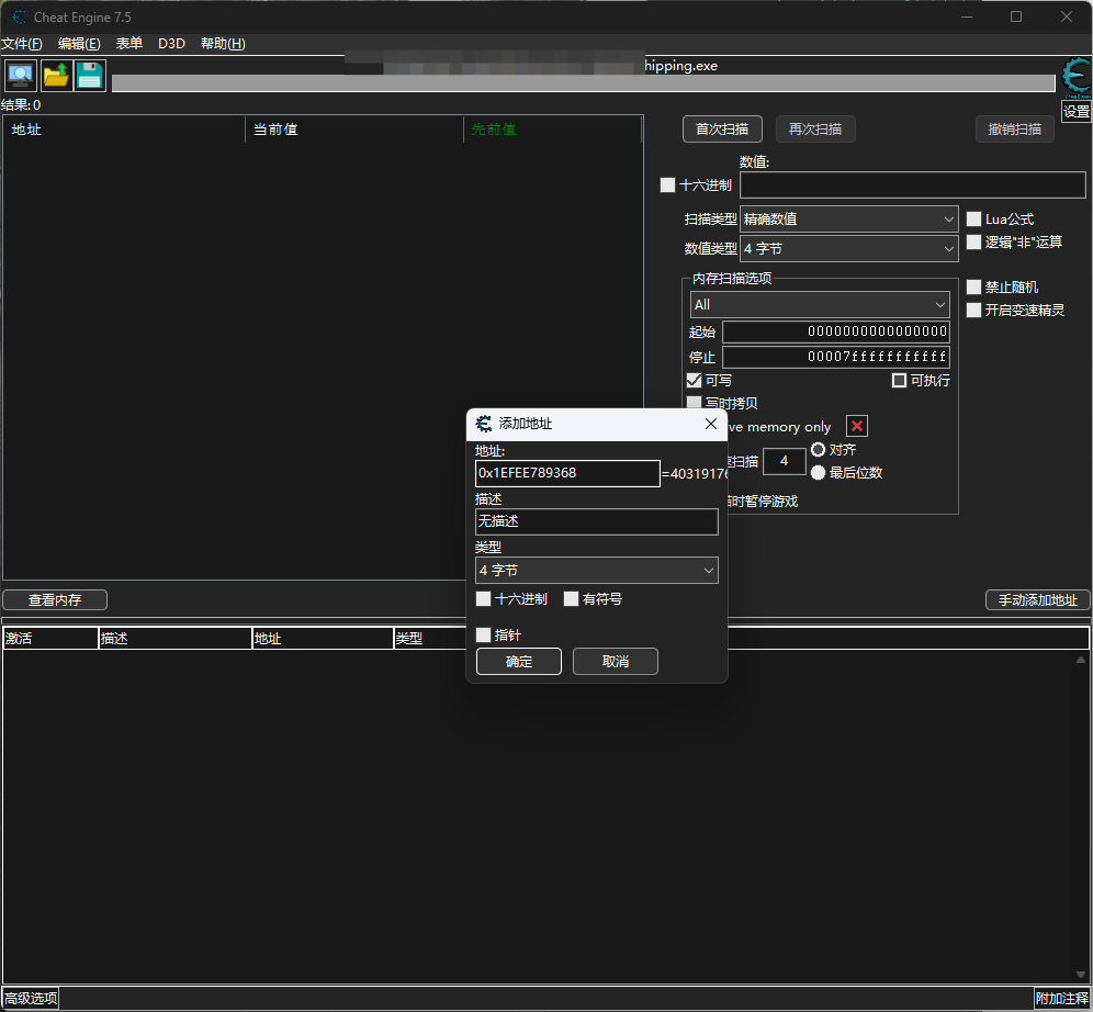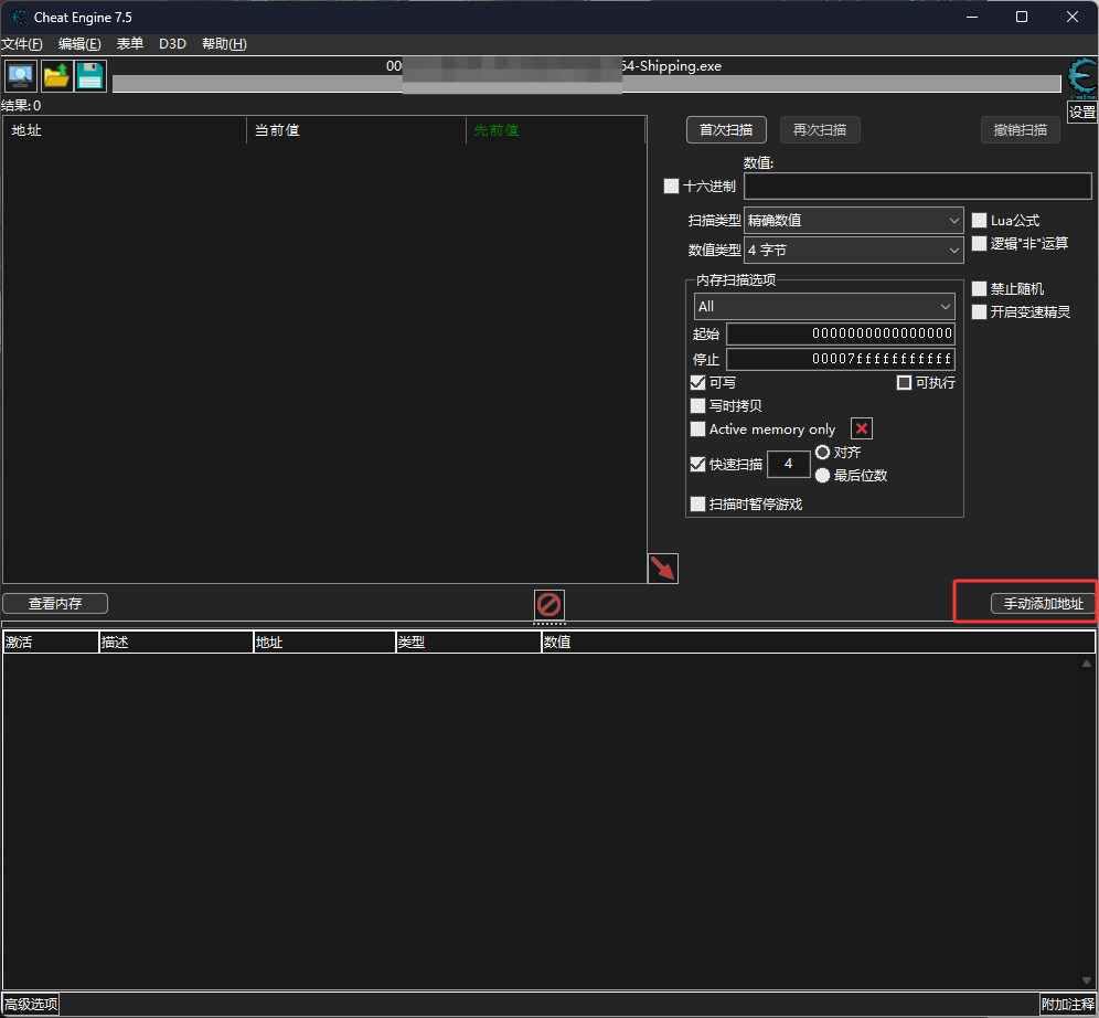 然后打开CE,打开之后点击下图红框的手动添加地址