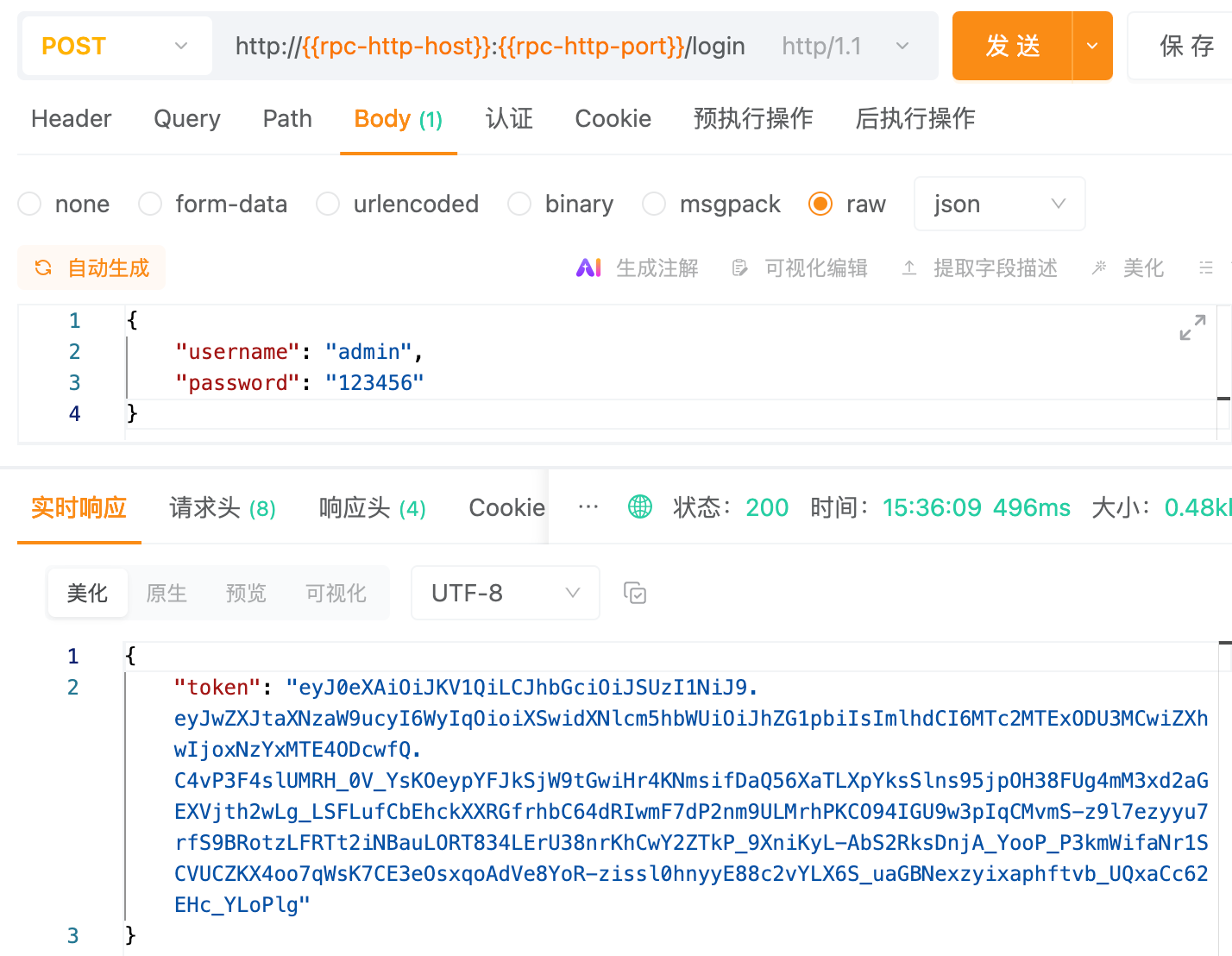 这个时候我们就可以通过 /login 接口(这个接口在 Besu 提供的集合里面没有)来做模拟登录获取 token 信息。