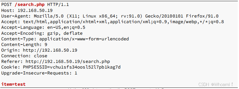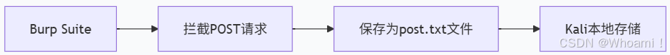 通过Burp拦截POST请求并将以下内容以post.txt文件保存在我们Kali上的本地文本文件。
