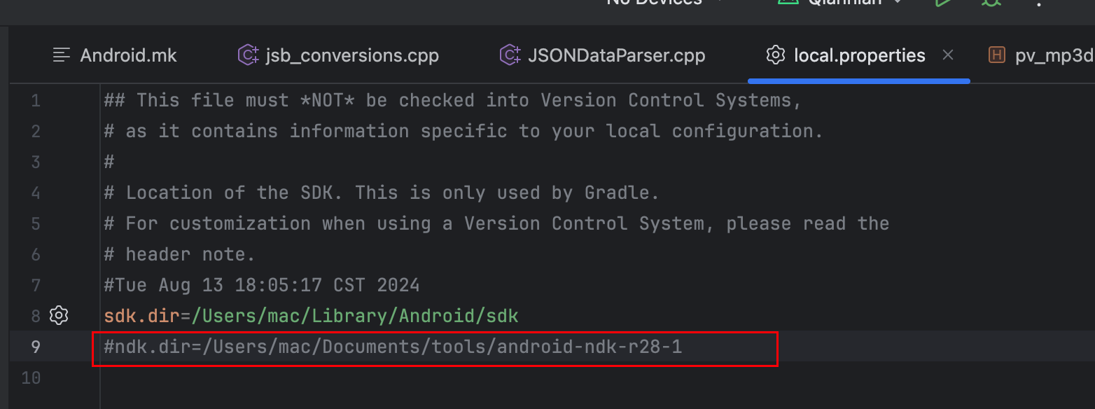 #这里如果用了官方例子里面提供的 PROP_NDK_VERSION= 则需要手动注释掉 jsb-default/frameworks/runtime-src/proj.android-studio/local.properties 中的ndk.dir