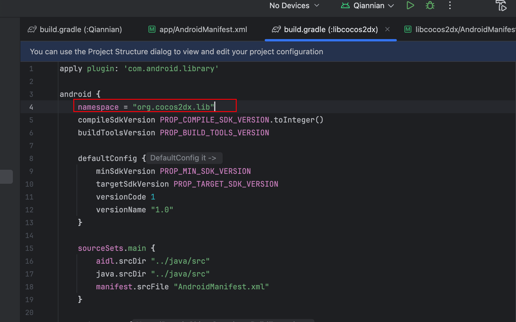 1:修改sdk版本 — 路径:/jsb-default/frameworks/runtime-src/proj.android-studio/gradle.properties