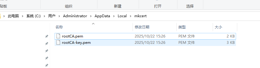 choco install mkcert安装之后初始化一下,初始化之后会在本地生成CA证书