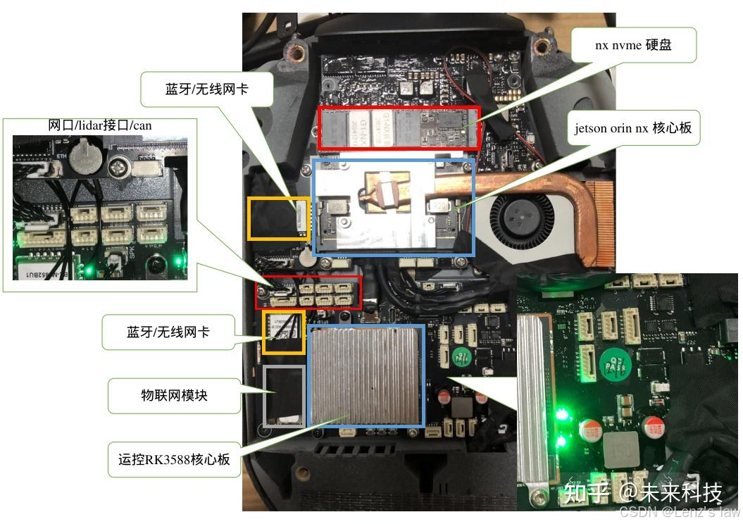 胸腔下半部分为小脑运控单元,也采用核心板+底板设计。据网上资料采用瑞芯微RK3588的主控方案,疑似沿用的GO2的成熟运控方案。