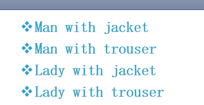 在上图中,实现者是jacket和trouser,而抽象类则是Man和Lady。