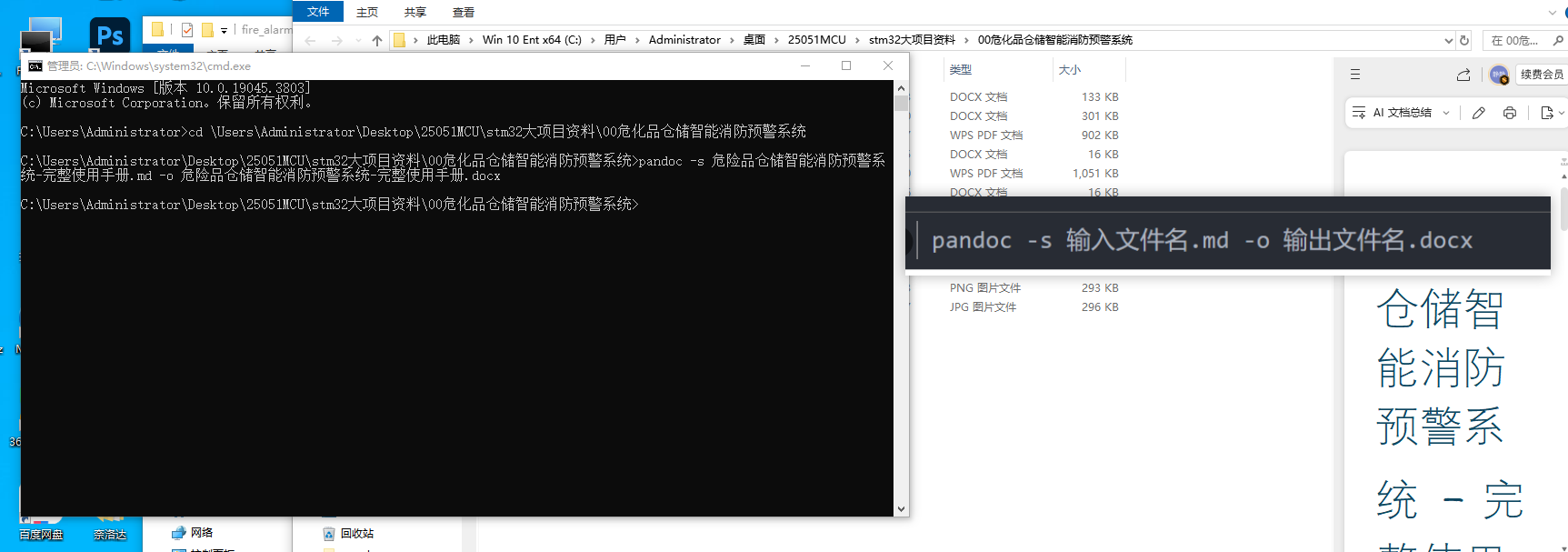C:\Users\Administrator\Desktop\25051MCU\stm32大项目资料\00危化品仓储智能消防预警系统>pandoc -s 危险品仓储智能消防预警系 统-完整使用手册.md -o 危险品仓储智能消防预警系统-完整使用手册.docx