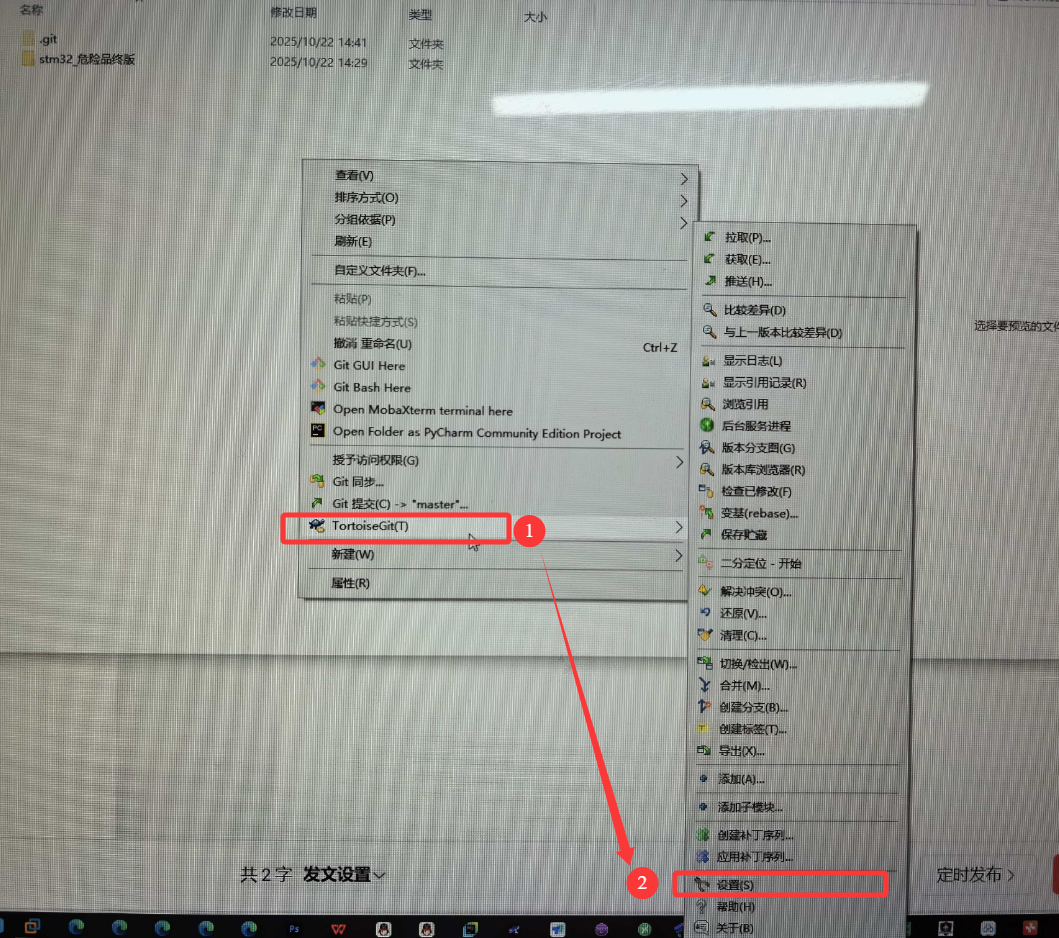 2、右键点击TortoiseGit(T)--->设置