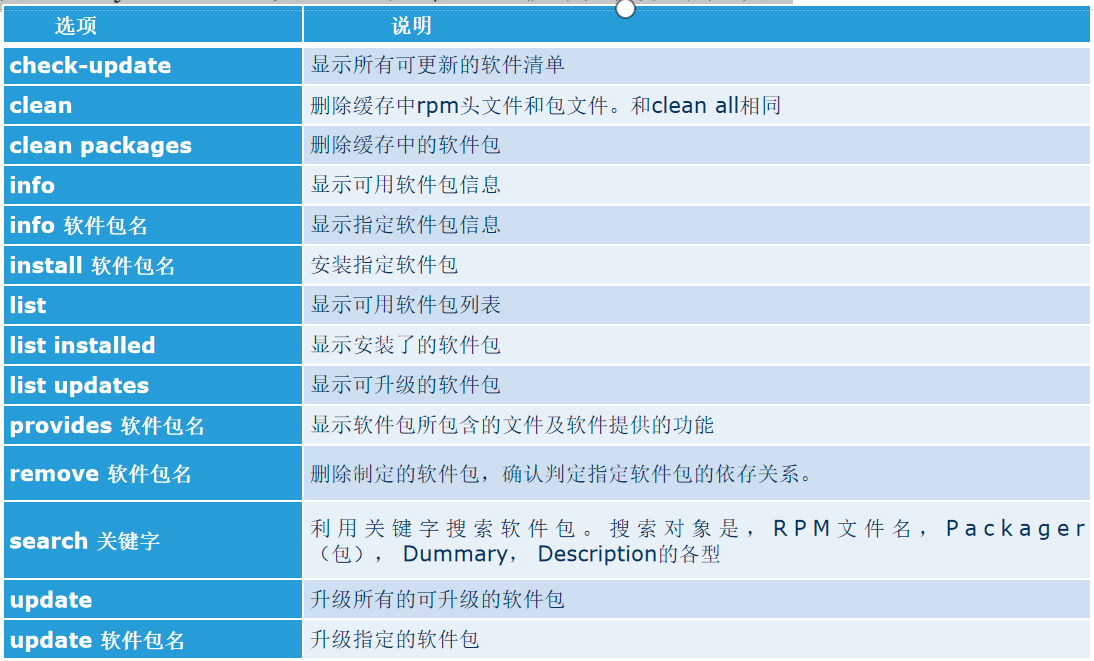 - yum命令:通过yum命令才能使用yum提供的众多功能。