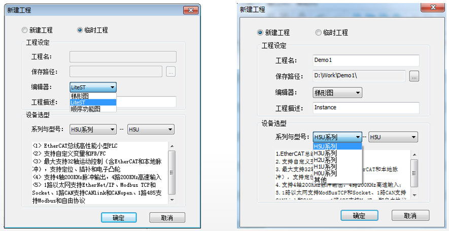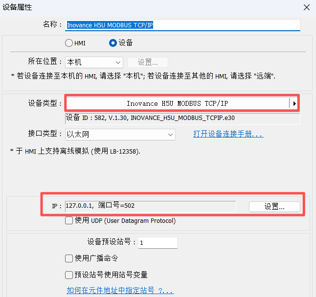 设备类型选择:Inovance H5U MODBUS TCP/IP