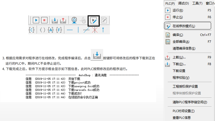 Autoshop编程软件支持在线修改模式,方便用户调试程序。启用该模式后,用户在线编辑程序不会对正在运行的设备产生影响,设备无需停机即可进行程序编辑。