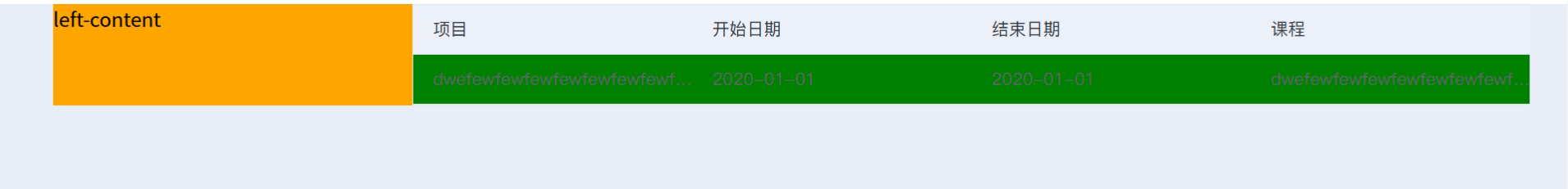 </head><body><div class="page-container"><div class="content mt-10"><div class="flex-box-left mt-10">left-content</div><div class="flex-box-right ml-10"><div class="custom-table"><div class="custom-thead"><div class="custom-tr"><div class="custom-td">项目</div><div class="custom-td">开始日期</div><div class="custom-td">结束日期</div><div class="custom-td">课程</div></div></div><div class="custom-tbody"><div class="custom-tr"><div class="custom-td">dwefewfewfewfewfewfewfewfewfwefwedwefewfewfewfewfewfewfewfewfwefwedwefewfewfewfewfewfewfewfewfwefwedwefewfewfewfewfewfewfewfewfwefwedwefewfewfewfewfewfewfewfewfwefwedwefewfewfewfewfewfewfewfewfwefwedwefewfewfewfewfewfewfewfewfwefwe</div><div class="custom-td">2020-01-01</div><div class="custom-td">2020-01-01</div><div class="custom-td">dwefewfewfewfewfewfewfewfewfwefwedwefewfewfewfewfewfewfewfewfwefwedwefewfewfewfewfewfewfewfewfwefwedwefewfewfewfewfewfewfewfewfwefwedwefewfewfewfewfewfewfewfewfwefwedwefewfewfewfewfewfewfewfewfwefwedwefewfewfewfewfewfewfewfewfwefwe</div></div></div></div></div></div>