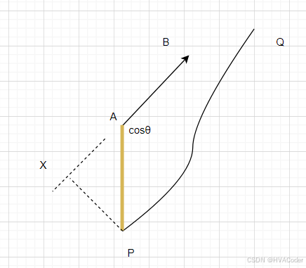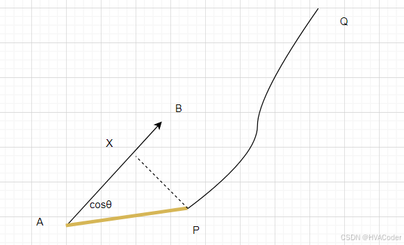 第一种情况,P向AB投影在AB中间,cosθ > 0