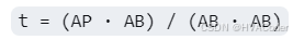 所以 t 等于( |AP| * cosθ ) / |AB| = |AX| / |AB|