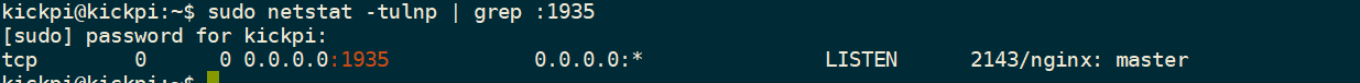 刚开始提示Connection to tcp://127.0.0.1:1935 failed: Connection refused错误,我们先检查端口1935是否被占用。