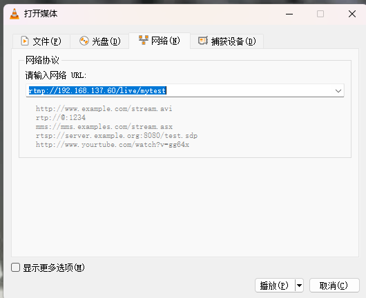 从图中我们可以看出,要想要实现RTMP视频监控,必须要有这三部分:推流客户端、流媒体服务器以及拉流客户端。这些不需要我们自己实现,譬如推流我们可以使用 FFmpeg 来做,流媒体服务器则使用Nginx来搭建,而拉流则可以用 VLC播放器来实现。