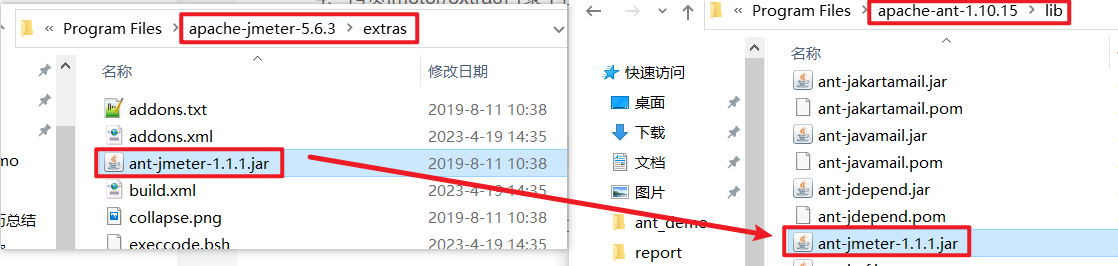 4、拷贝jmeter/extras目录下的ant-jmeter-1.1.1.jar到ant安装路径lib下