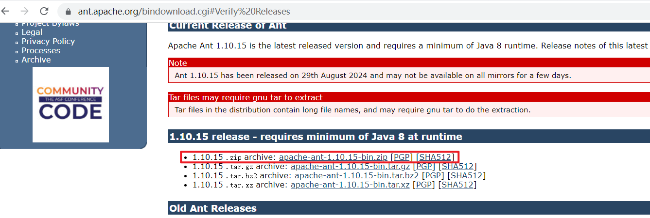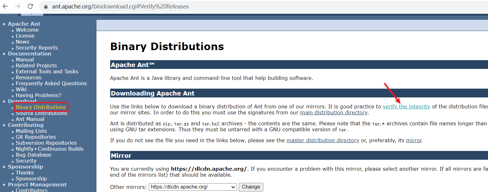 下载地址:https://ant.apache.org/bindownload.cgi#Verify%20Releases