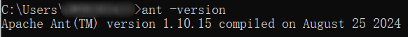 ④打开CMD,输入ant -version,出现以下内容说明配置成功