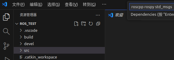这里先创建自定义包的名字ros_sample,然后按entet,再次输入具体的功能包,这里是roscpp、rospy、std_msgs。
