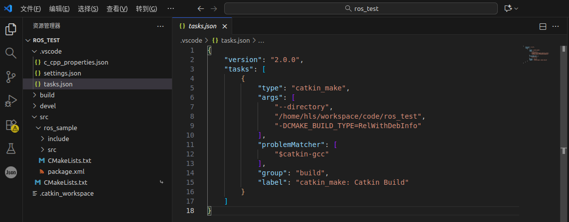 {"version": "2.0.0","tasks": [{"type": "shell","command":"catkin_make","args": ["--directory","/home/hls/workspace/code/ros_test","-DCMAKE_BUILD_TYPE=RelWithDebInfo"],"problemMatcher": ["$catkin-gcc"],"group": {"kind":"build","isDefault": true},"presentation": {"echo": true,"reveal": "always","focus": false,"panel": "shared","showReuseMessage": true,"clear": false},"label": "catkin_make: debug"}]