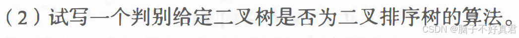 bool isBST(TreeNode* root, int& lastValue) {// 递归终止条件:空树视为BSTif (!root) {return true;}// 1. 递归检查左子树// 如果左子树不是BST,则整个树不是BSTif (!isBST(root->left, lastValue)) {return false;}// 2. 检查当前节点// 二叉搜索树要求当前节点值 > 前一个节点值// 注意:如果允许重复值,应将 <= 改为 <if (root->val <= lastValue) {return false;}// 更新lastValue为当前节点值// 用于后续右子树的比较lastValue = root->val;// 3. 递归检查右子树return isBST(root->right, lastValue); }