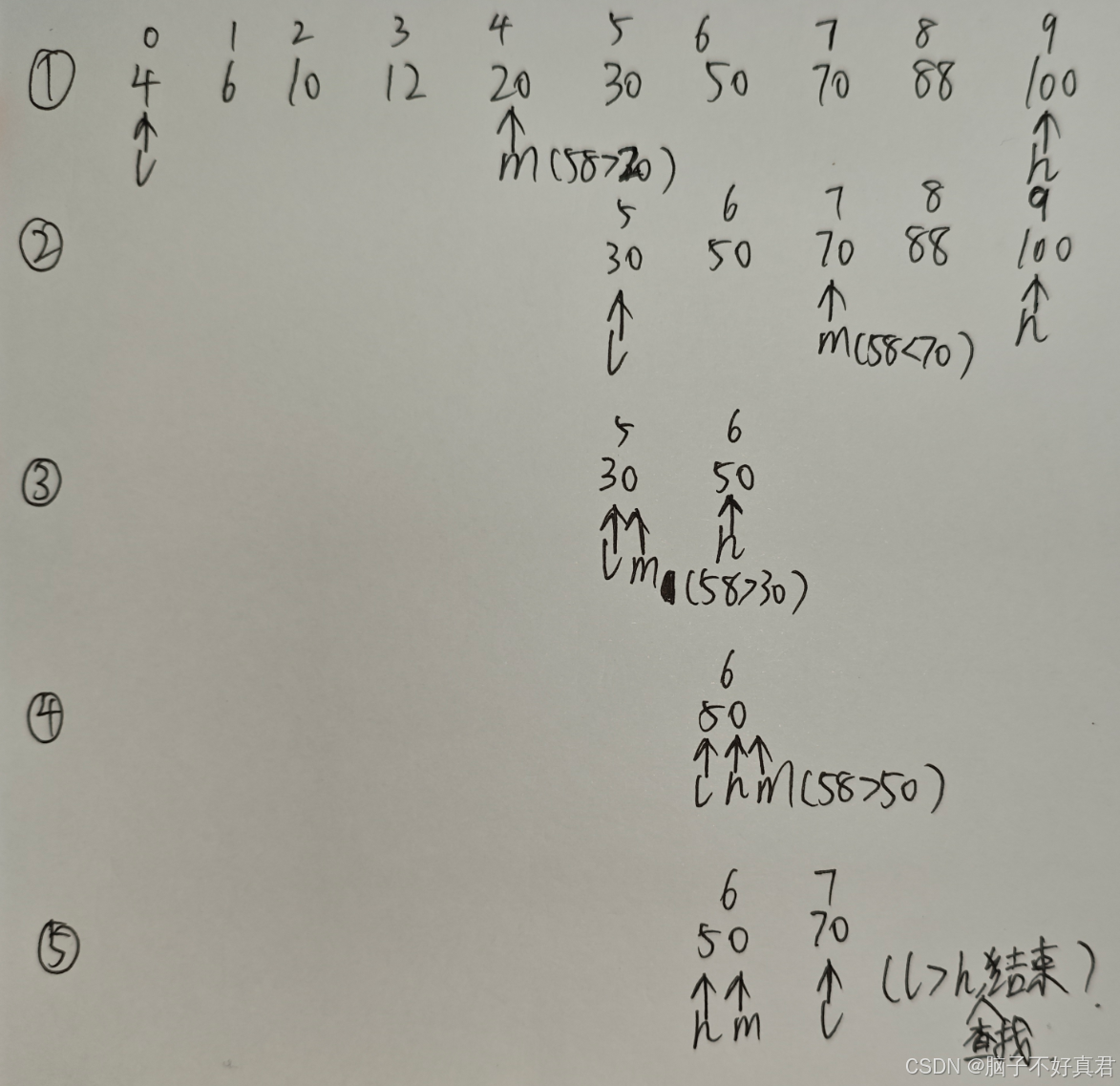 int BinarySearchRecursive(int arr[], int low, int high, int k) {if (low > high) {return -1; // 查找失败}int mid = (low + high) / 2;if (k == arr[mid]) {return mid; // 查找成功} else if (k < arr[mid]) {return BinarySearchRecursive(arr, low, mid - 1, k); // 左半区} else {return BinarySearchRecursive(arr, mid + 1, high, k); // 右半区} }