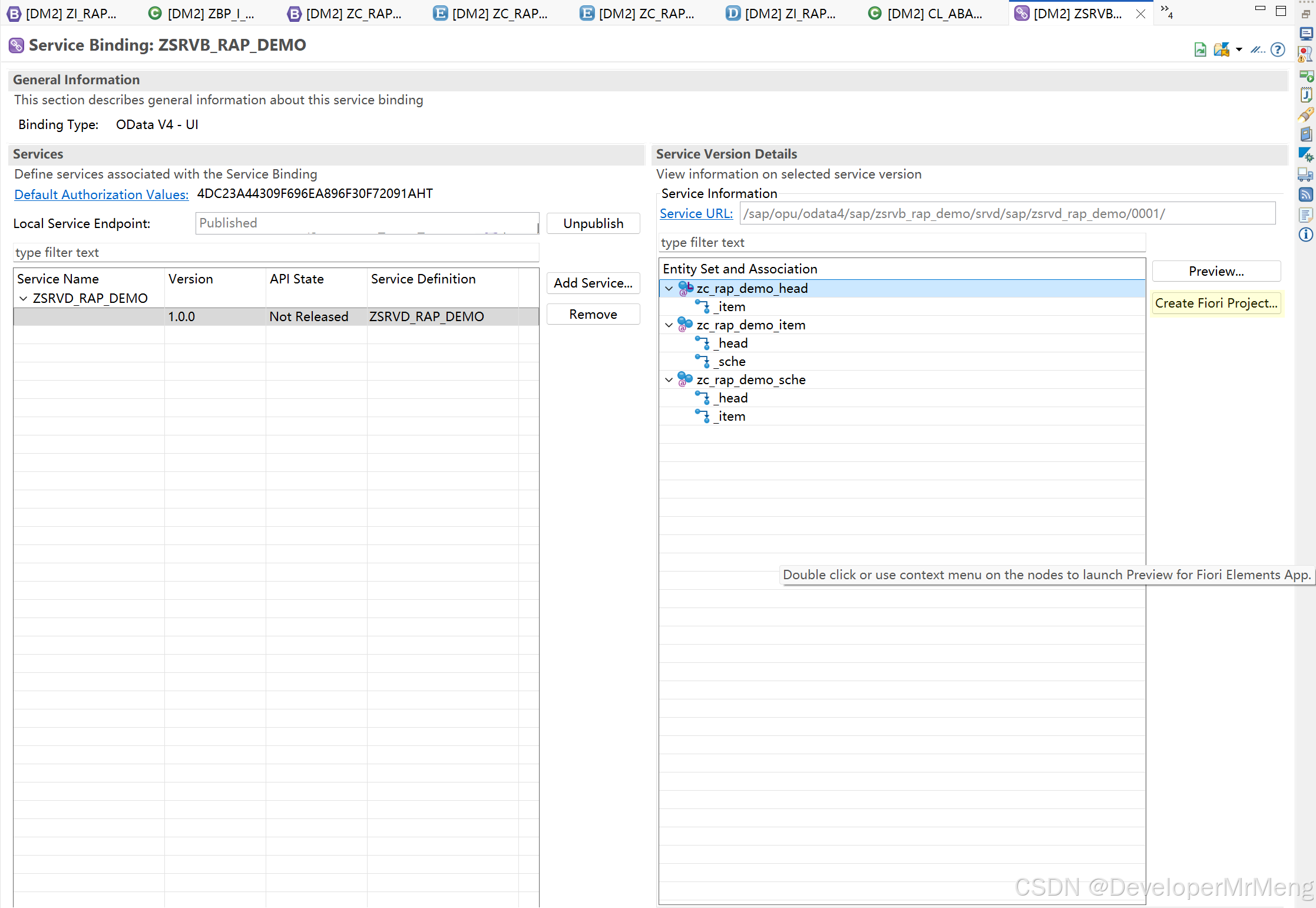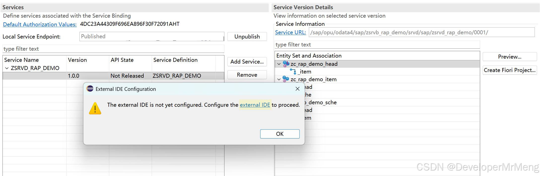 前一篇中介绍了RAP中关于messages的相关内容,到这一篇为止,关于managed场景的开发内容和一些基本功能的实现也介绍的差不多了,但一直到这一步都只是以预览模式在进行测试,无法作为一个正式应用进行使用以及传输,所以本篇介绍如何将已经开发好的内容部署为RAP应用并集成到Fiori Lanchpad中,部署过程在S4 HANA 2023 On-Premise环境中进行。