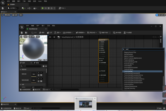 3双击打开NewMaterial,进入材质编辑器。在空白处右键搜索 “Texture Sample”,添加一个 Texture Sample 节点。