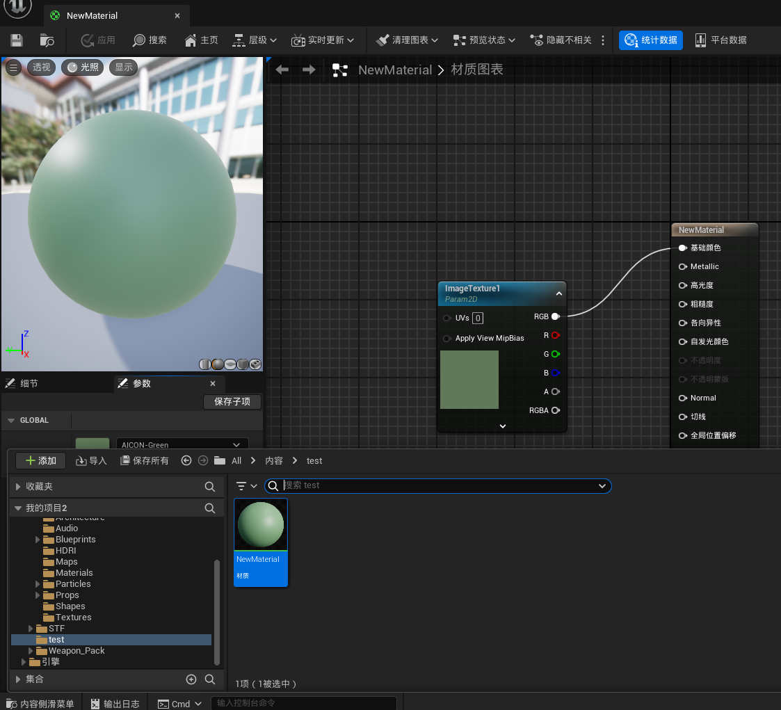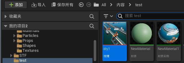 2在内容浏览器中,打开右键菜单,点击“材质”创建一个材质,命名为 NewMaterial。