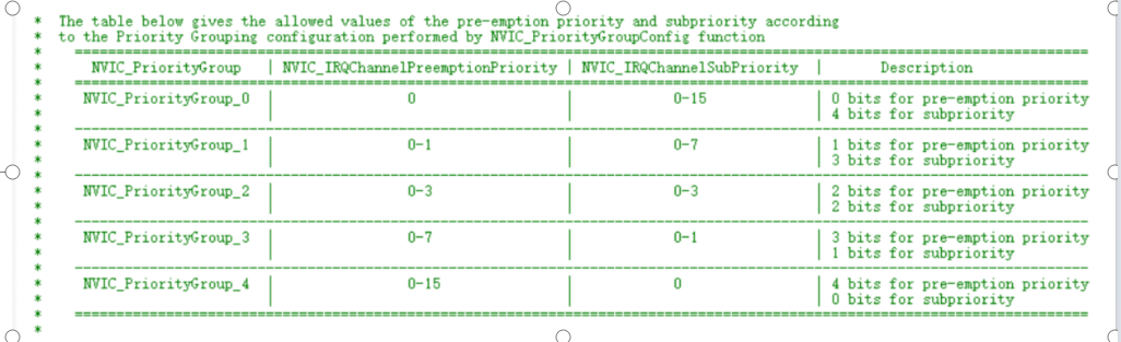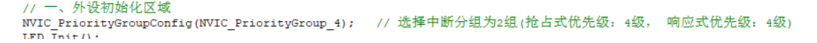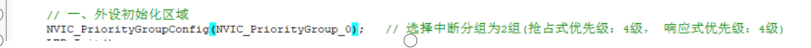 将NVIC_PriorityGroupConfig( ); 设置为NVIC_PriorityGroup_0后从Key1-key4正按LED1-LED4按顺序正常亮起,从key4-key1反按LED4先亮,随后LED1亮LED2、LED3亮起