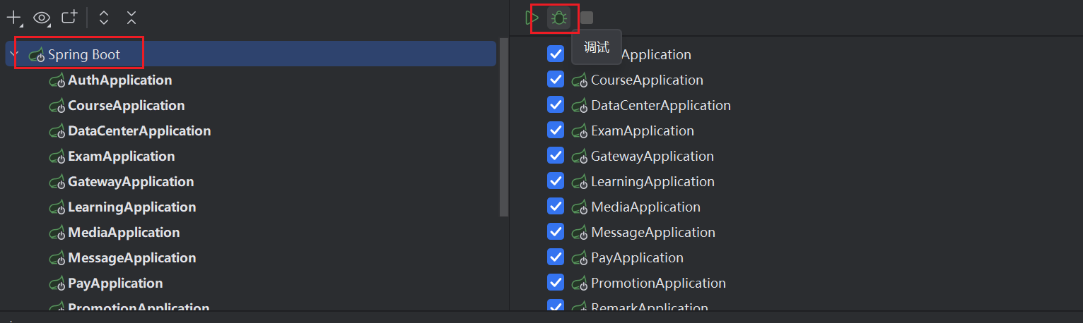 点击SpringBoot就会自动全选,然后点击调试按钮