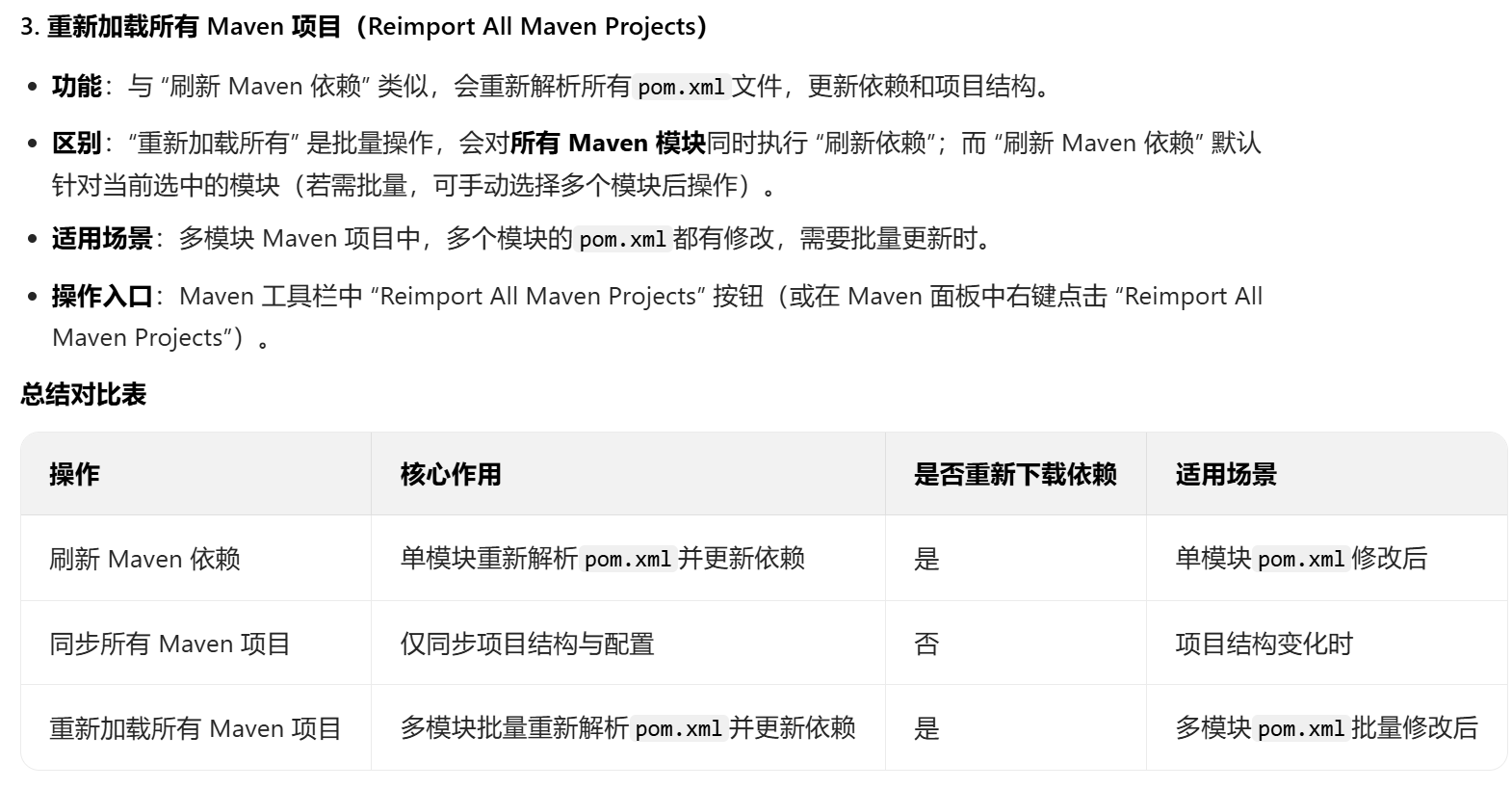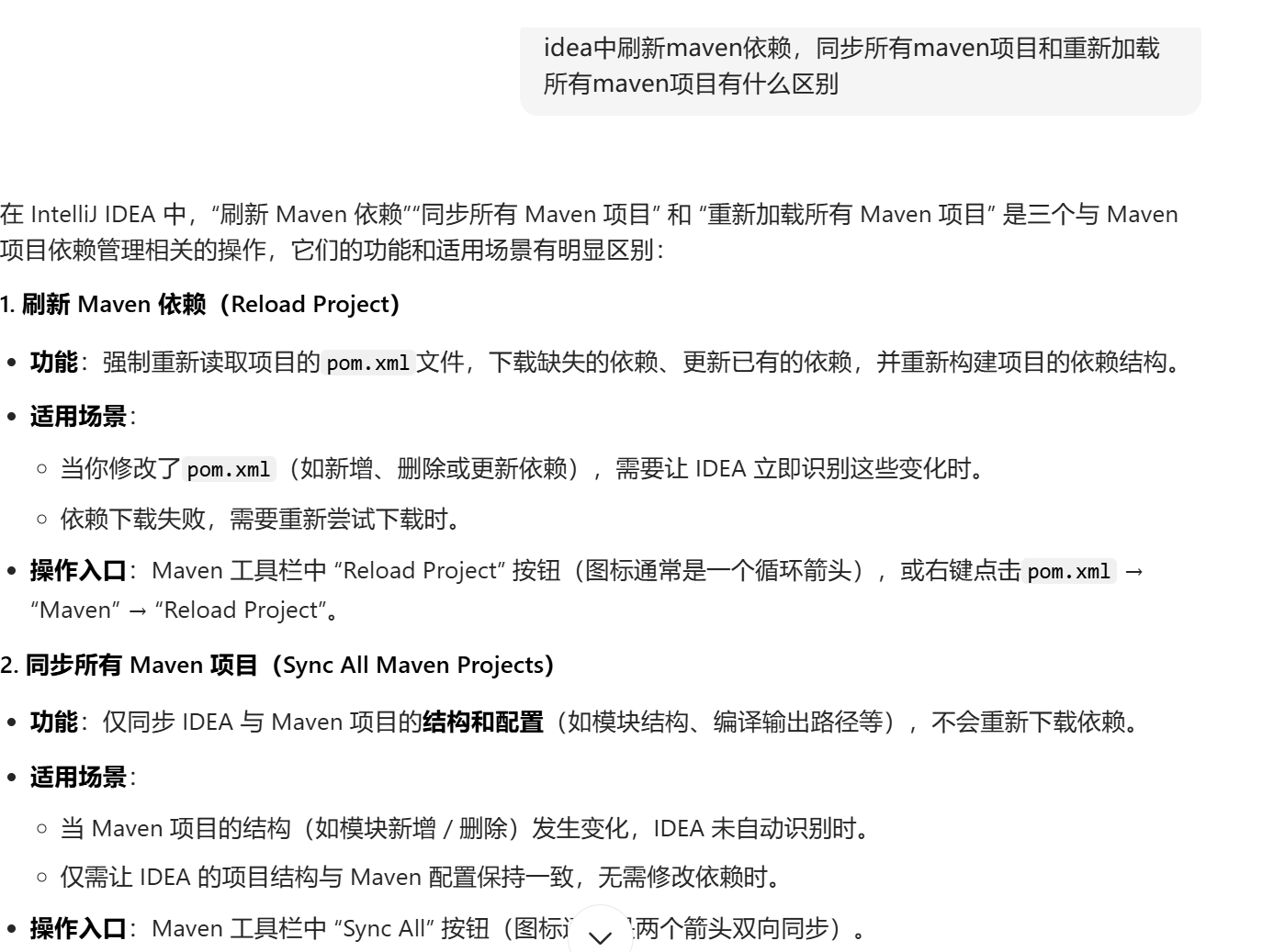 说实话我一直不知道这两个的具体区别,但是感觉就是重新加载会更加全面一点,之前我都是点下面的重新加载所有maven项目