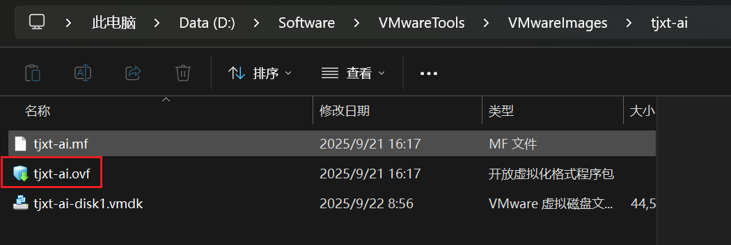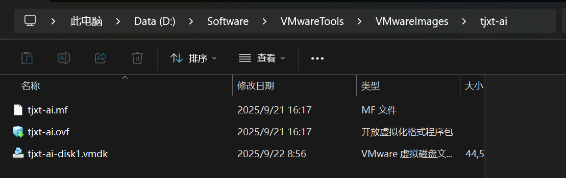 在资料中找到天机学堂AI项目配套的虚拟机,就是下面这三个,放到自己的d盘下(自己找位置放,我这个文件夹是自己建的,每次导入虚拟机我都是放这里面)