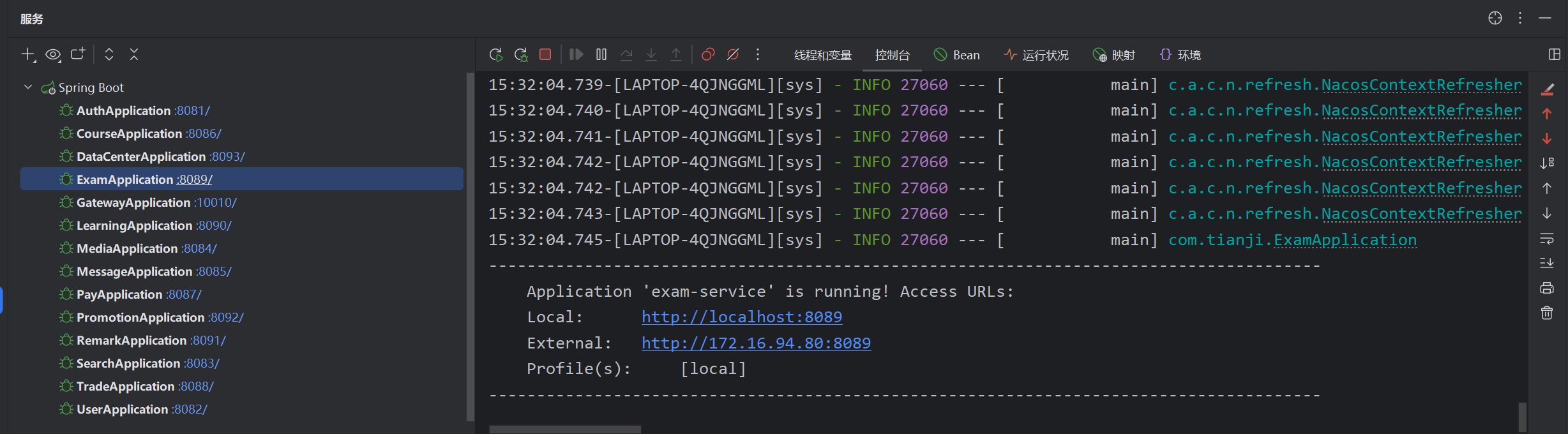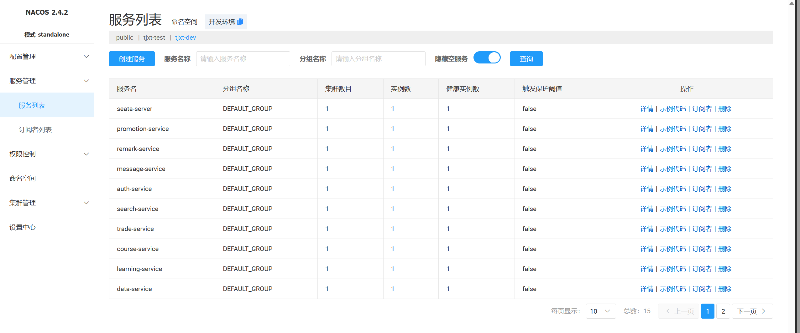 登录nacos,打开服务管理的服务列表,就可以看到tjxt-dev下的服务都注册成功了
