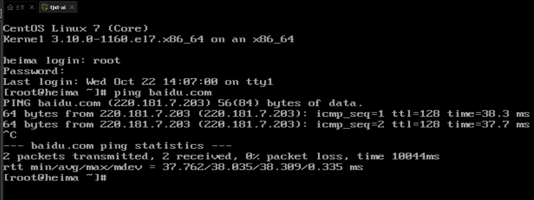 如果出现虚拟机登录之后ping baidu.com就显示Name or Service Not Known的情况(忘记截图了),如果你跟着ai去排查问题大概率啥都解决不了,说实话当时遇到这个问题我也蒙了搞了好一会。还好我喜欢写博客记录遇到的问题,所以我当时想到尝试重启网关之后就解决了(直接看第三部分跟着操作之后就能ping通)