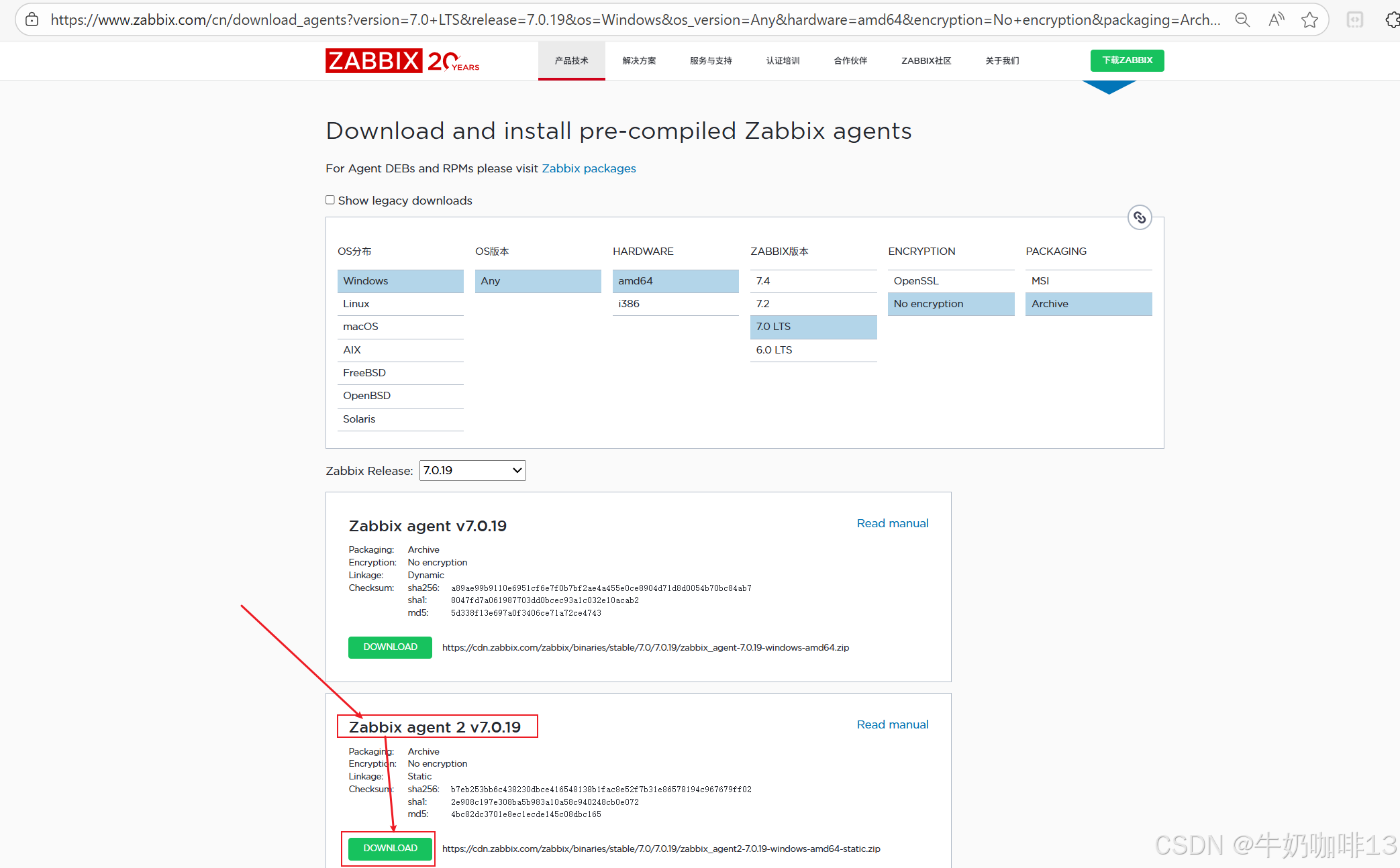 #1-根据zabbix-sevre的版本选择对应的agent2包下载(如我这里是7.0.19)