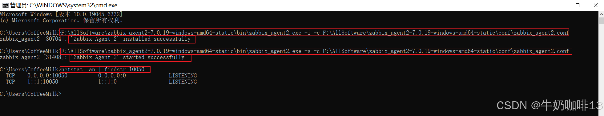 HostMetadata=windows zabbix.ck#3-安装agent2实操流程(具体的agent2文件路径【F:\AllSoftware\zabbix_agent2-7.0.19-windows-amd64-static】需要根据自己的实际情况修改)【以下操作都在CMD的管理员环境下执行】