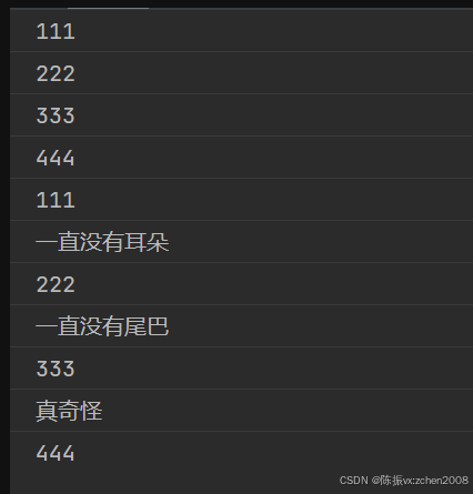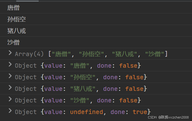 const F4=['小沈阳','刘能','赵四','宋小宝']let [xiao,liu,zhao,song]=F4console.log(xiao) //小沈阳console.log(liu) //刘能console.log(zhao) //赵四console.log(song) //宋小宝