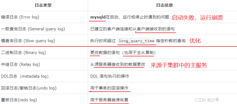 日志相关 | general_log | 控制是否开启通用查询日志(记录所有 SQL,默认 OFF) | SET GLOBAL general_log = ON; |