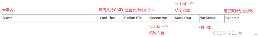 ◦ 服务器启动时,会将每个全局变量初始化并设置默认值,具体的值可以通过命令⾏或选项⽂件
