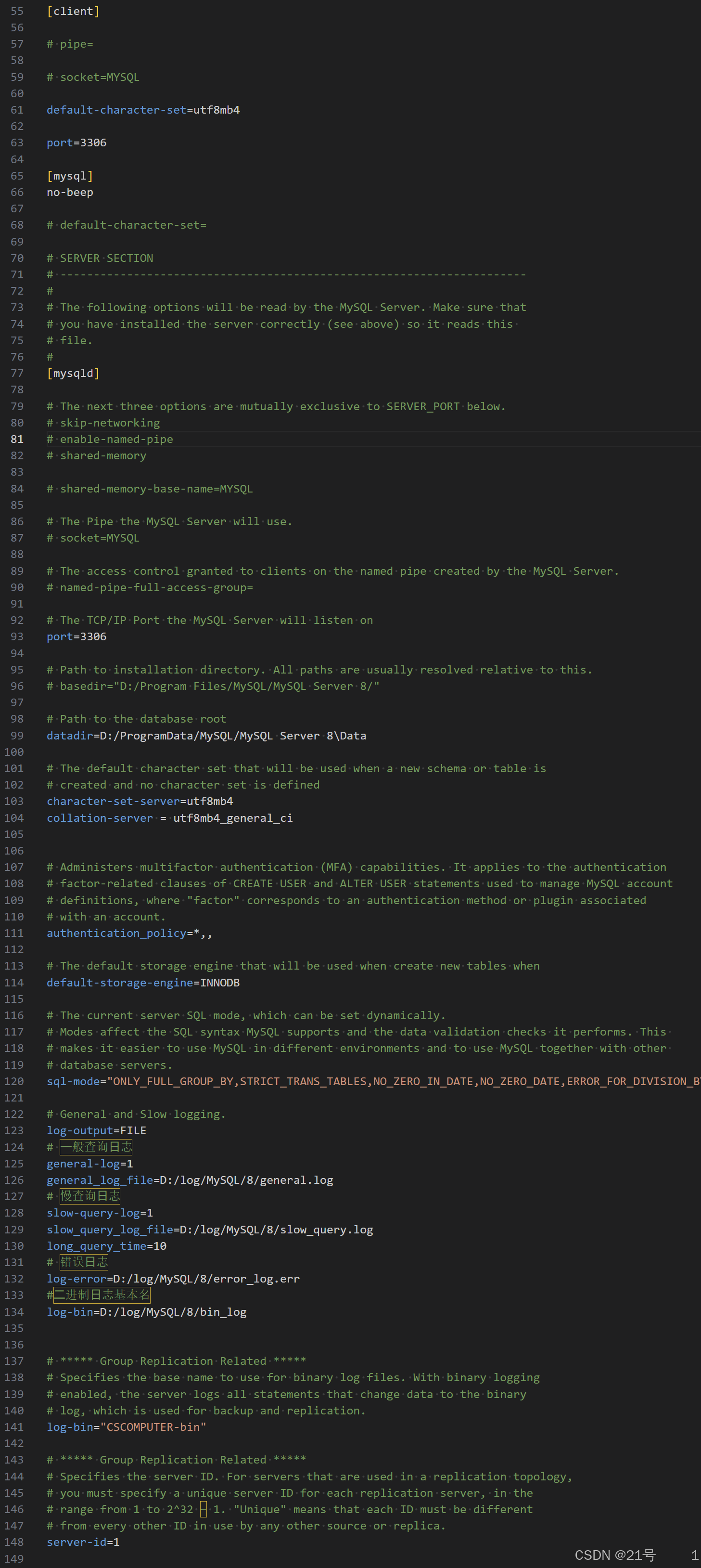 mysqld从选项⽂件中的 [mysqld] 和 [server] 组(节点)中读取选项内容