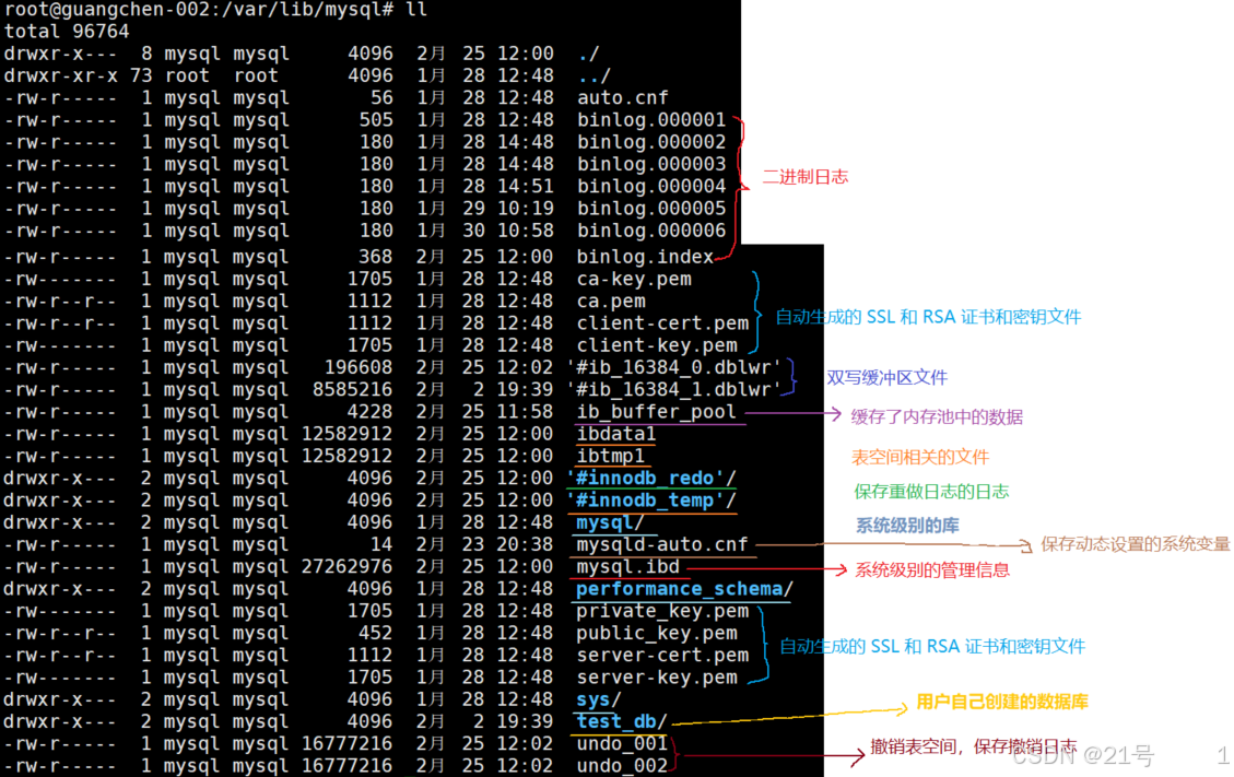 • ndb_binlog_index :⽤于NDB Cluster 复制的⼆进制⽇志信息。只有在⽀持 NDB