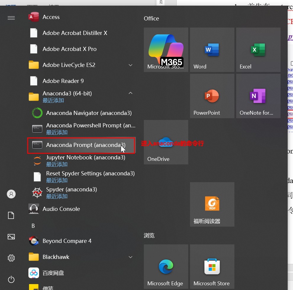 2、Anaconda prompt的进入命令行,如下所示: