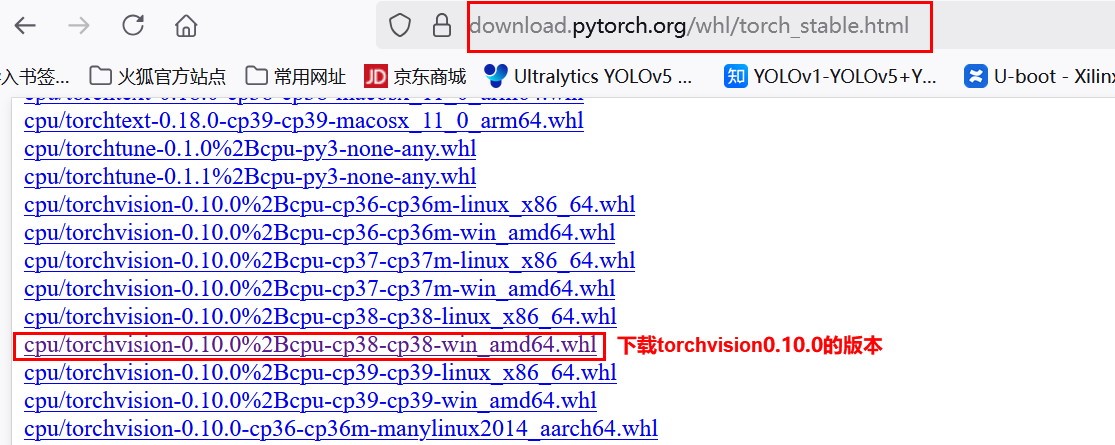 1、首先在pytorch官网下载pytorchvision 0.10.0版本的离线安装包(注意:下载cpu版本,用于CPU训练使用),如下所示: