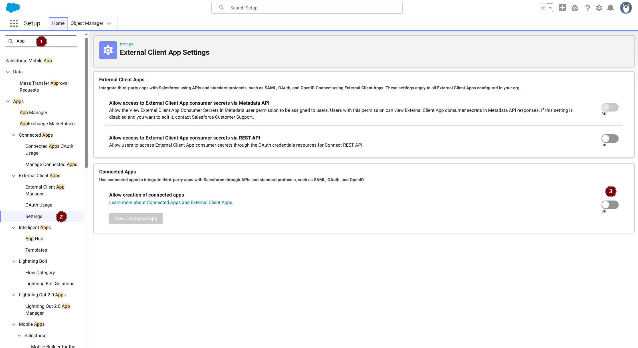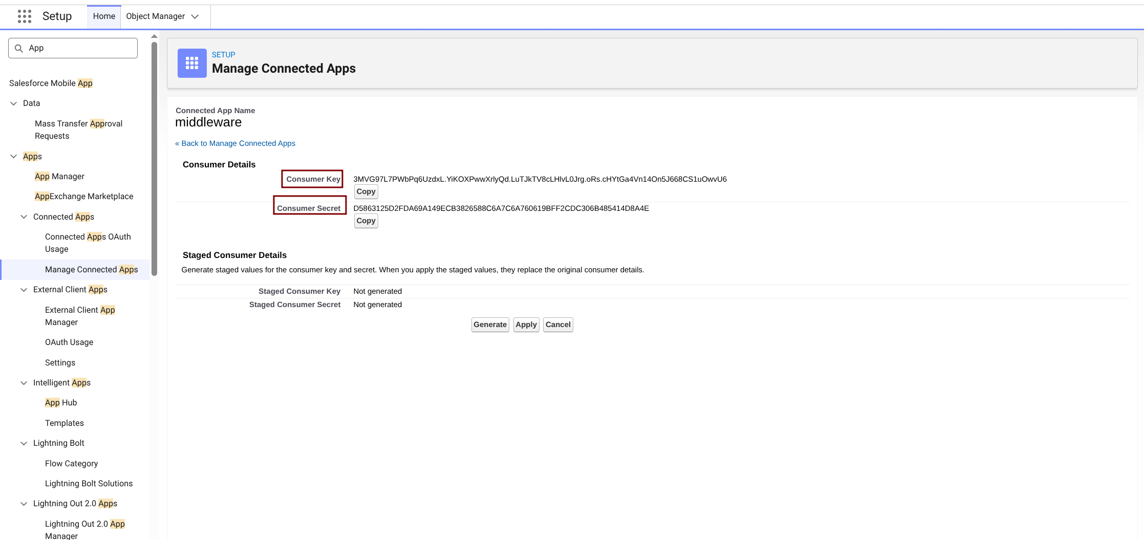 Setup → App Manager → [Your App] → Manage Consumer Details