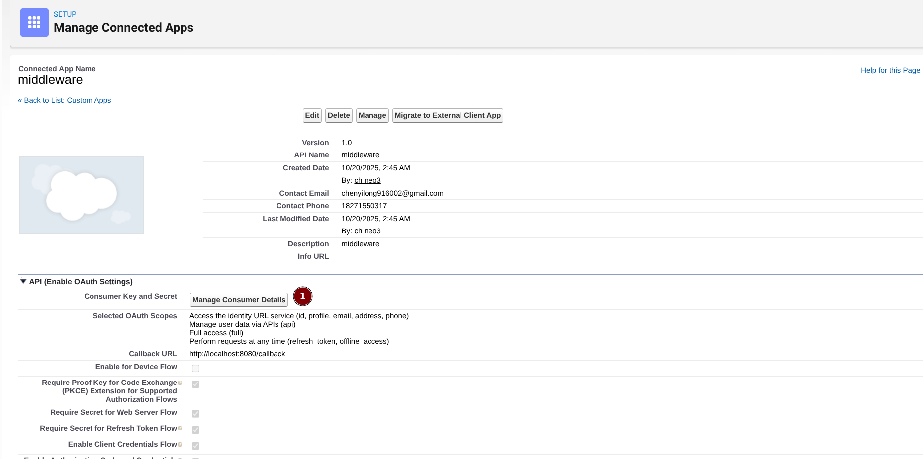需求是个人或者公司的中间服务对接Salesforce, 就需要进行Connected App, 是非常关键的一步